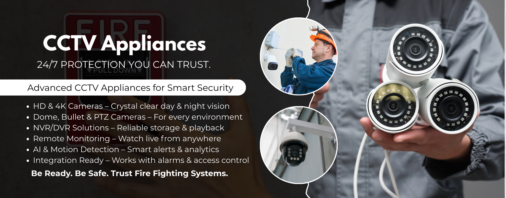 Our expertise covers Fire Alarm & Suppression Systems, Fire Fighting Solutions, Burglar Alarms, CCTV & Surveillance Appliances, Video Door Phones, Electronic Door Locks, and Access Control Systems. Every solution we deliver is designed with one goal – to make security simple, smart, and effective for everyone.