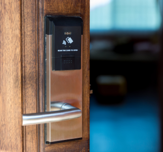 *Electronic Door Lock: An electronic lock is a locking device which operates by means of electric current. Electric locks are sometimes stand-alone with an electronic control assembly mounted directly to the lock.